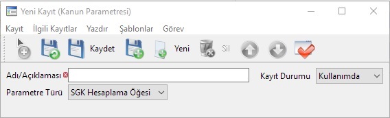 Parametre Türü: SGK Kanun Parametresinin tanımı bu alana girilmektedir. Parametre türü SGK Hesaplama Öğesi ve İşsizlik Sigortası olmak üzere iki tanedir.