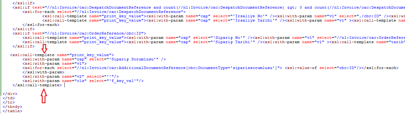 Faturada sipariş sorumlusunun sağ üst kısımda görünmesi için resimdeki gösterilen alana aşağıdaki kodu ekleyelim.