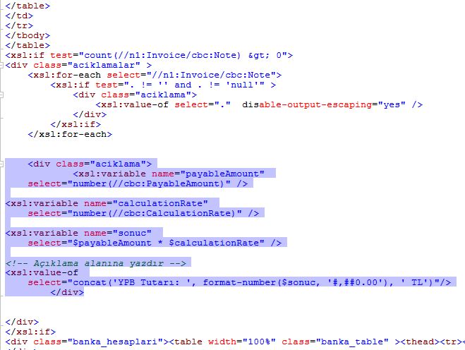 Fatura alt açıklamasında YPB Tutarı hatalı geliyorsa tasarımda aşağıdaki kodları tasarıma eklemelisiniz