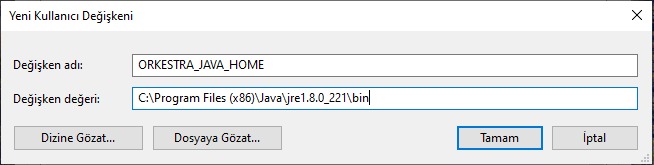 Not: Java kurulumu sırasında farklı bir yol seçilmediyse, varsayılan olarak C:\Program Files (x86)\Java dizinine kurulur. Bu klasör içinden kullanılmak istenen Java sürümünün bin klasör yolu kopyalanarak ilgili alana yapıştırılabilir.
