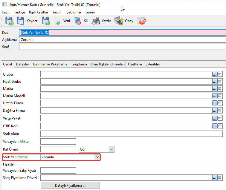 Stok sayım fişi özellik değer seti tanımları da yine bu sekme altından kayıt altına alınmaktadır.