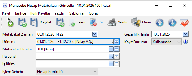 Geçerlilik Tarihi: Mutabakatın hangi tarihe kadar geçerli olacağını belirtir. Bu tarihten sonra oluşturulan kayıtlarda mutabakat uygulanmaz.