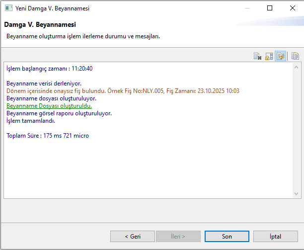 Normal ve Onaylı: Beyannamede bildirilir (Beyanname dosyasına dahil edilir).