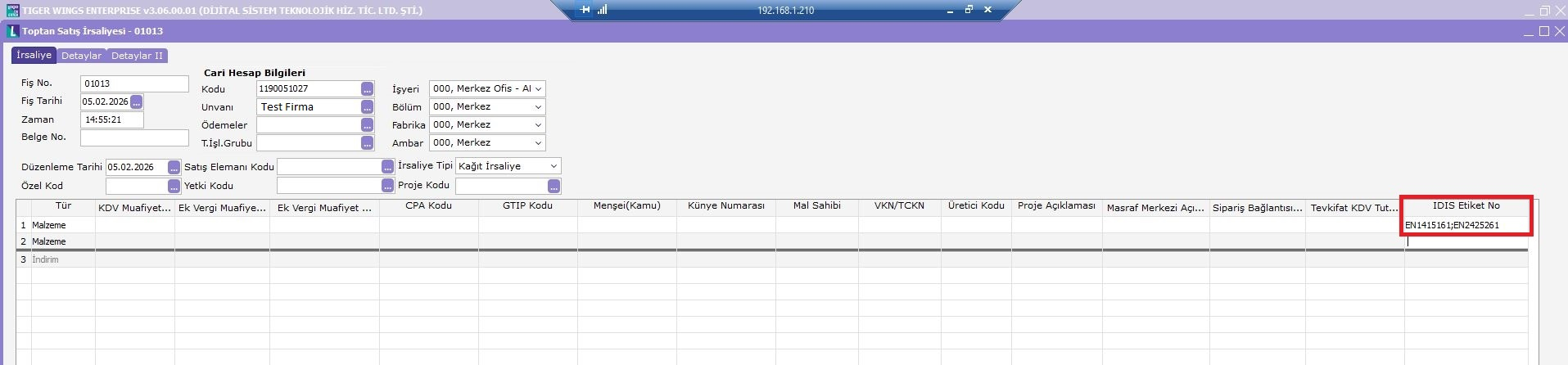 İDİS kapsamında yapılan teslimlere ilişkin olarak düzenlenecek e-Fatura ve e-İrsaliyelerde “Sevkiyat No” ve “Etiket No” bilgilerinin girilmesi zorunludur.
