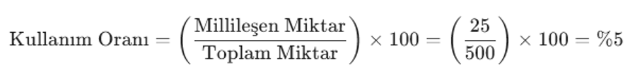DİİB kapsamında toplam 500 birim ithalat hakkınız olduğunu varsayalım. Bu miktarın 25 birimini millileştirdiğinizde, sistem arka planda şu hesaplamayı yapar: