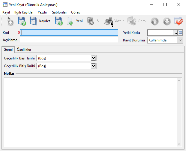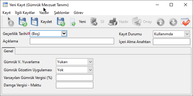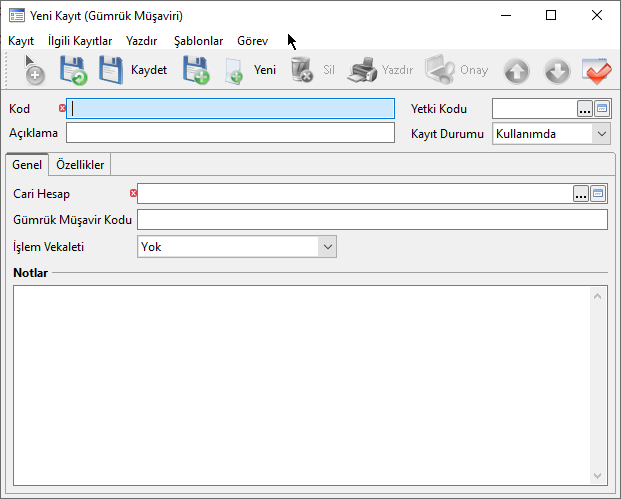- Kullanım Amacı: İthalat ve İhracat dosyalarında "Gümrük Müşaviri" alanında seçim yapabilmek için bu tanımların yapılması gerekir.