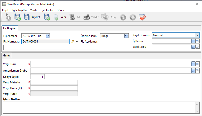 Damga Vergisi Tahakkuk Fişi Oluşturma