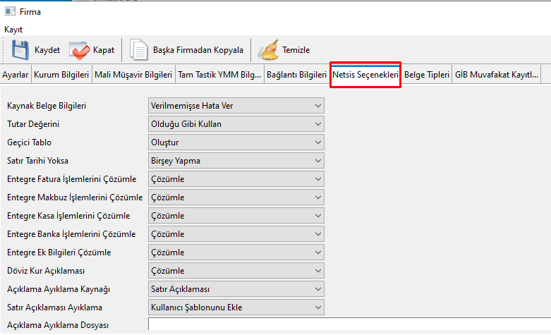 Netsis e-Defter gönderimi yapmadan önce, Orkestra e-Defter programında ilgili firmanın Netsis Seçenekleri ayarlarının doğru seçilmiş olması gerekmektedir.