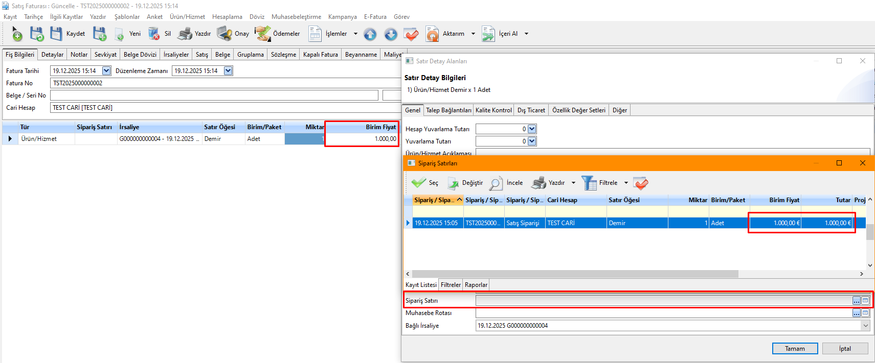 Serbest : Döviz kontrolü yapmadan fatura satırlarında sipariş eşleştirmesini yapabiliriz.