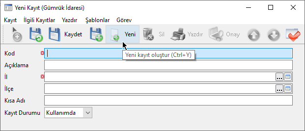Şirketinizin dış ticaret işlemlerini gümrük idarelerinde takip eden yetkili müşavirlik firmalarının tanımlandığı ekrandır.