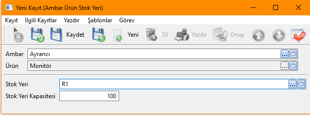 Ambar Ürün Stok Yeri: Ürünlerimizi ambar içerisinde belirli stok yerlerine atayarak uçtan uca kontrol sağlayabiliriz. Bu sistem; ürünlerin hızlıca bulunmasına, stok takibinin hatasız yapılmasına ve depo verimliliğinin artmasına olanak tanır. Ayrıca, her stok yeri için kapasite sınırı belirleyerek depo alanımızı en verimli şekilde yönetebiliriz.