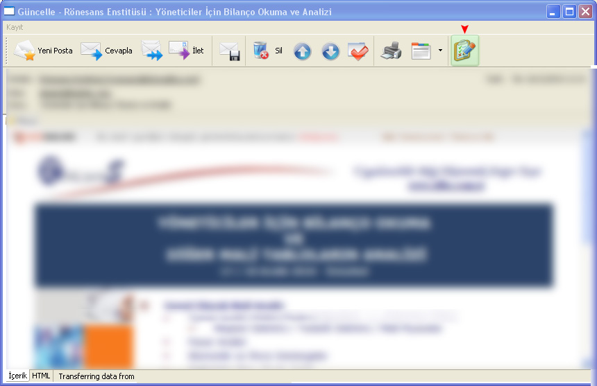 Bayrak eklemek istediğiniz posta açılır.Açılan e-postanın menüsünde bulunan ve aşağıdaki ekran görüntüsünde yeşil ile işaretlenen "Mesaj Bağlantıları" butonuna tıklanır.